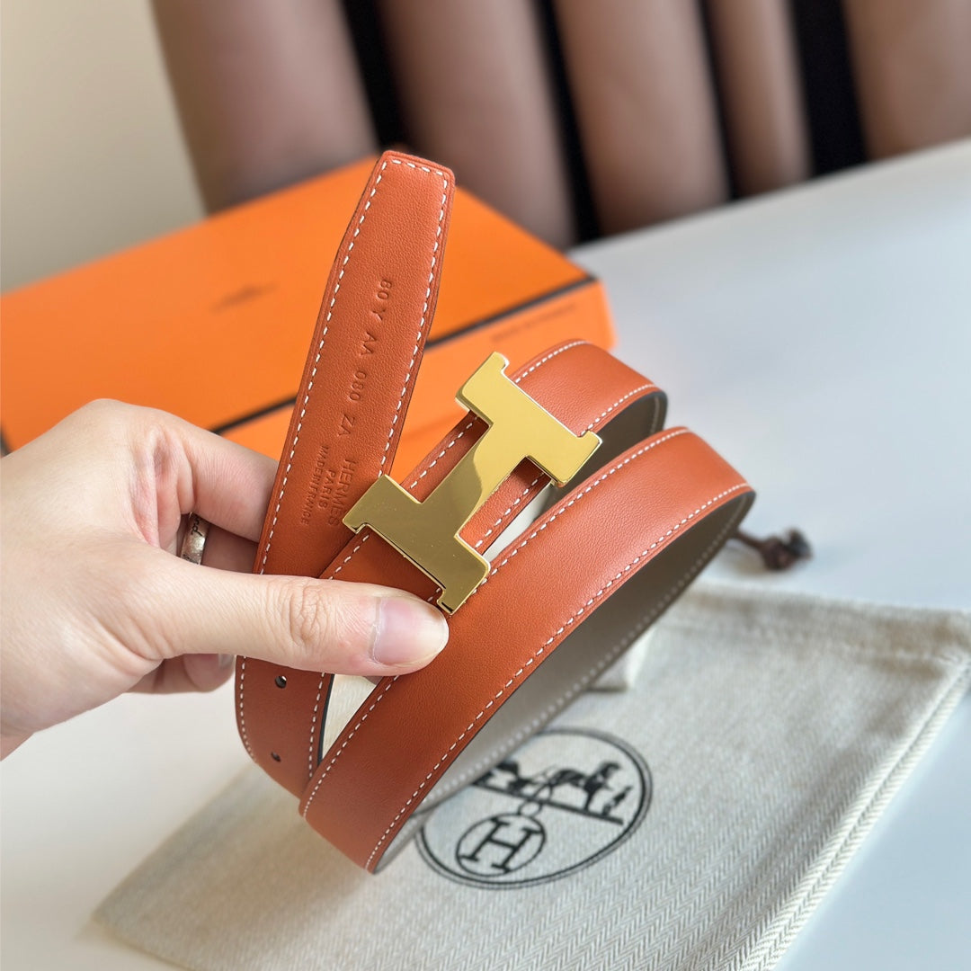 HM Gold Constance & Reverible Belt Brown Etoupe Leather 125371