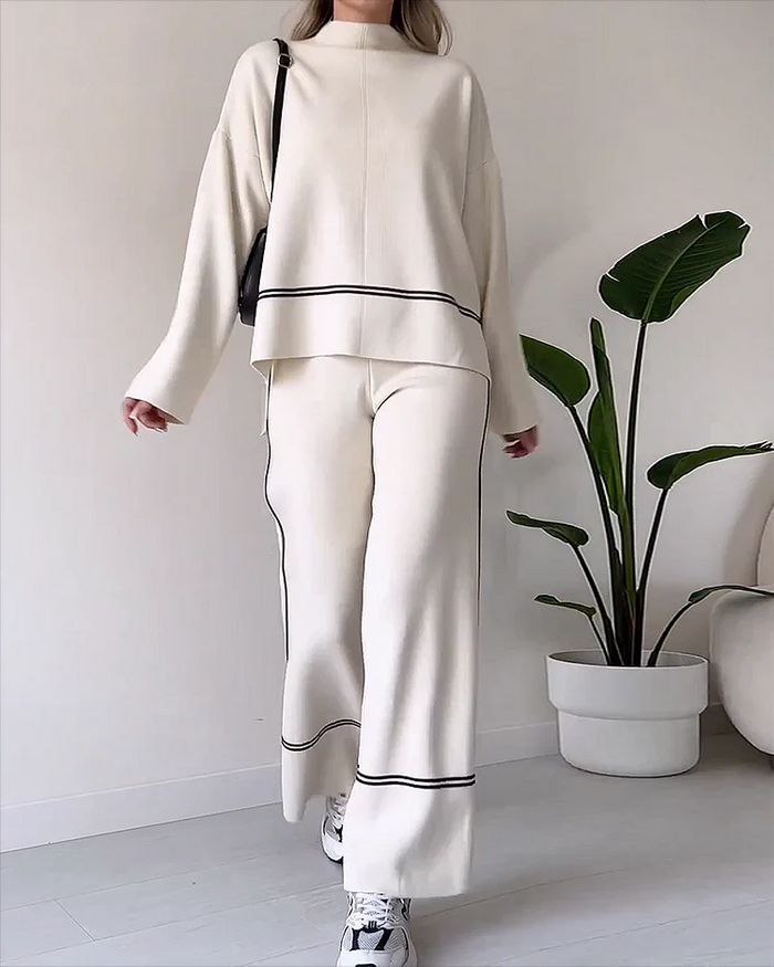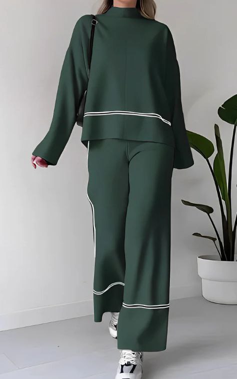 Ce tricoté doux, composé d’un pull à col rond et d’un pantalon à jambes larges, vous offre l’équilibre parfait entre liberté de mouvement et style. "Serena" prouve qu’il est possible d’être à la fois élégante et décontractée, sans renoncer à la sensation de confort absolu.