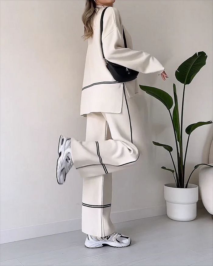 Imaginez un ensemble qui allie douceur et modernité. L'ensemble "Serena" est bien plus qu'une simple tenue – c’est une invitation à redéfinir le confort et l’élégance. Avec sa coupe contemporaine et sa matière chaleureuse, il devient l'allié idéal de vos journées d'automne et d'hiver, où chaque détail fait la différence.
