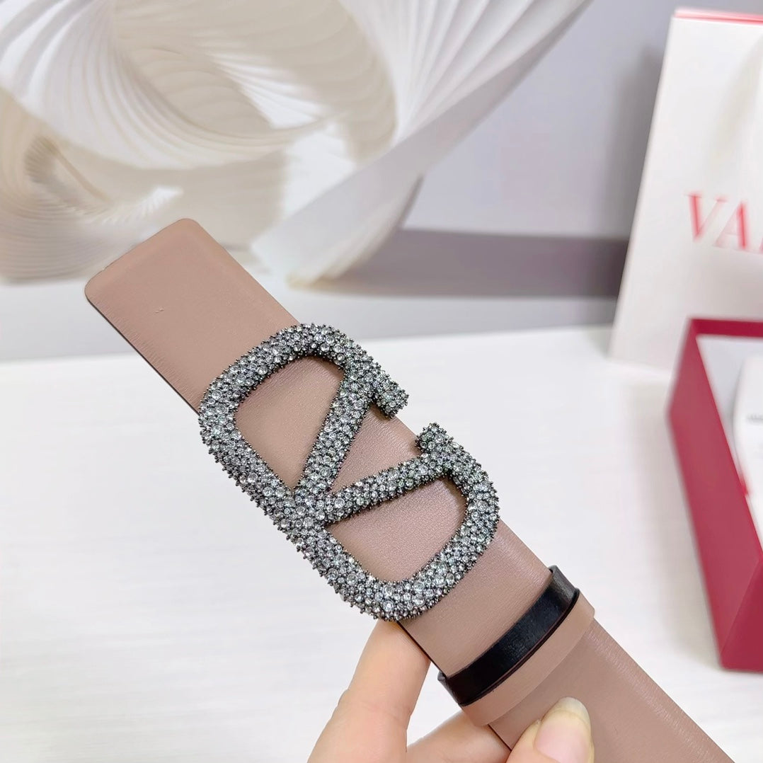 VLOGO SIGNATURE REVERSIBLE BELT 40MM ROSE BLACK CALFSKIN SILVER BUCKLE